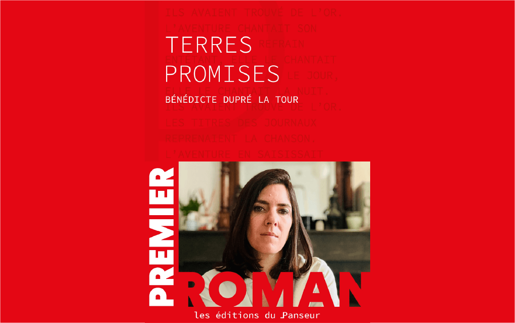 offre un premier roman où s’entrechoquent des vies minuscules emportées par le mouvement furieux des ruées vers l’or. Tour à tour, les histoires se croisent, s’enchâssent et se démultiplient en constituant une mosaïque brillamment construite et dévoilant par couches successives la part de mystère et d’ombre en chacun des personnages. Avec Terres Promises, Bénédicte Dupré la Tour nous montre la cicatrice que portent encore les corps, l’Histoire et la face du monde.